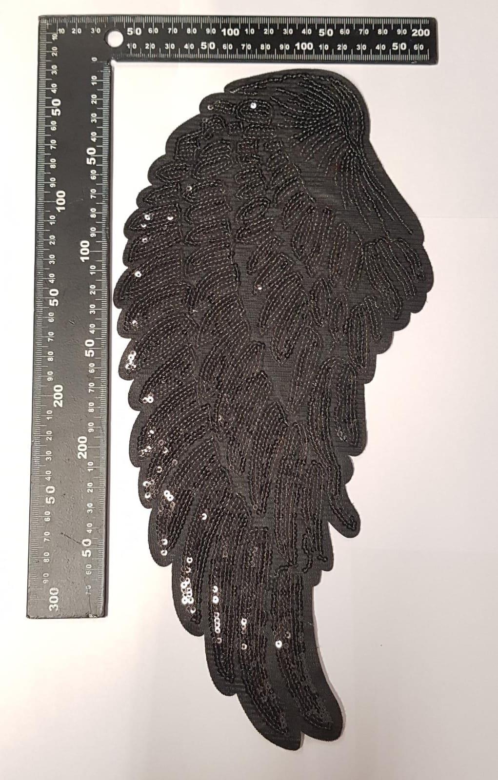 PC3100I - Super Sequin Black Wings XXL (Iron On)