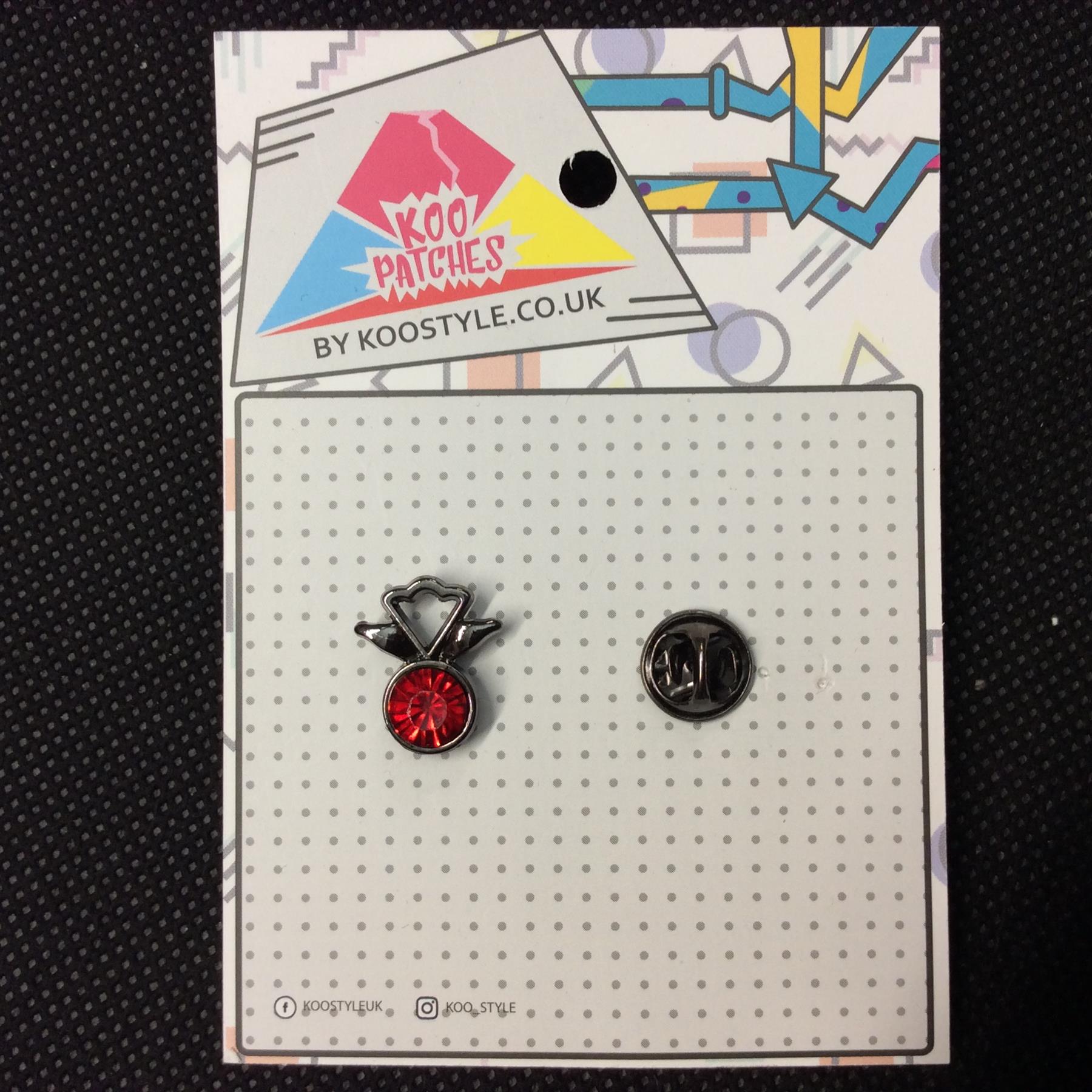 MP0025 - Red Stone Hanging Metal Pin Badge