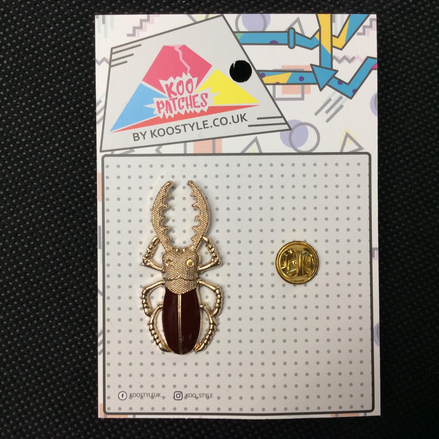 MP0026B - Gold Red Stag Beetle Bug Metal Pin Badge