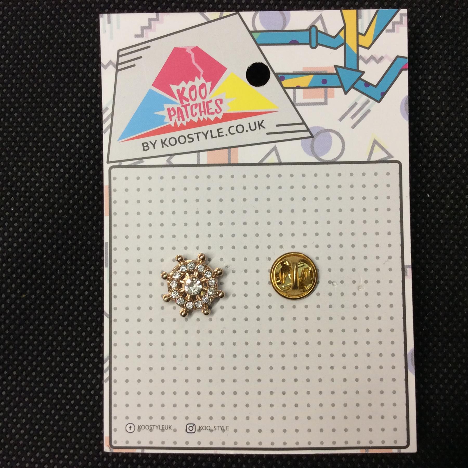 MP0034 - Stones Gold Steering Wheel Boat Ship Metal Pin Badge