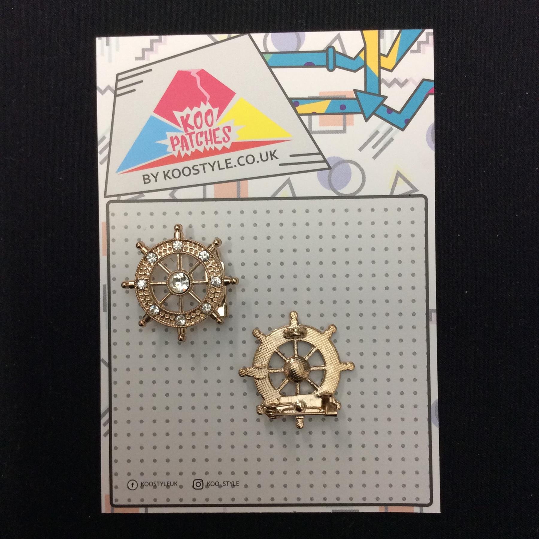 MP0039 - Gold Stone Ship Boat Steering Wheel Metal Pin Badge