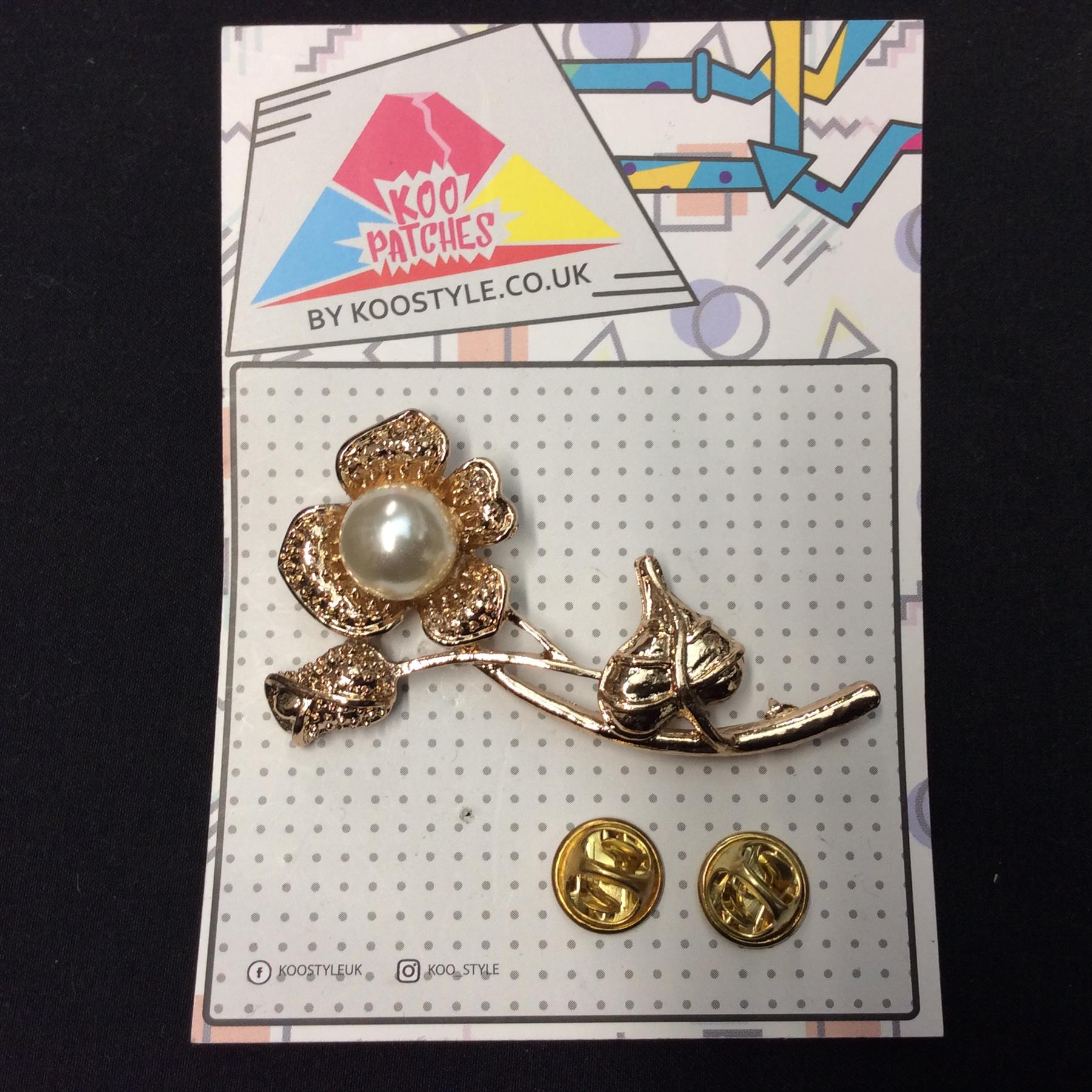 MP0051 - Golden Pearl Flower Metal Pin Badge
