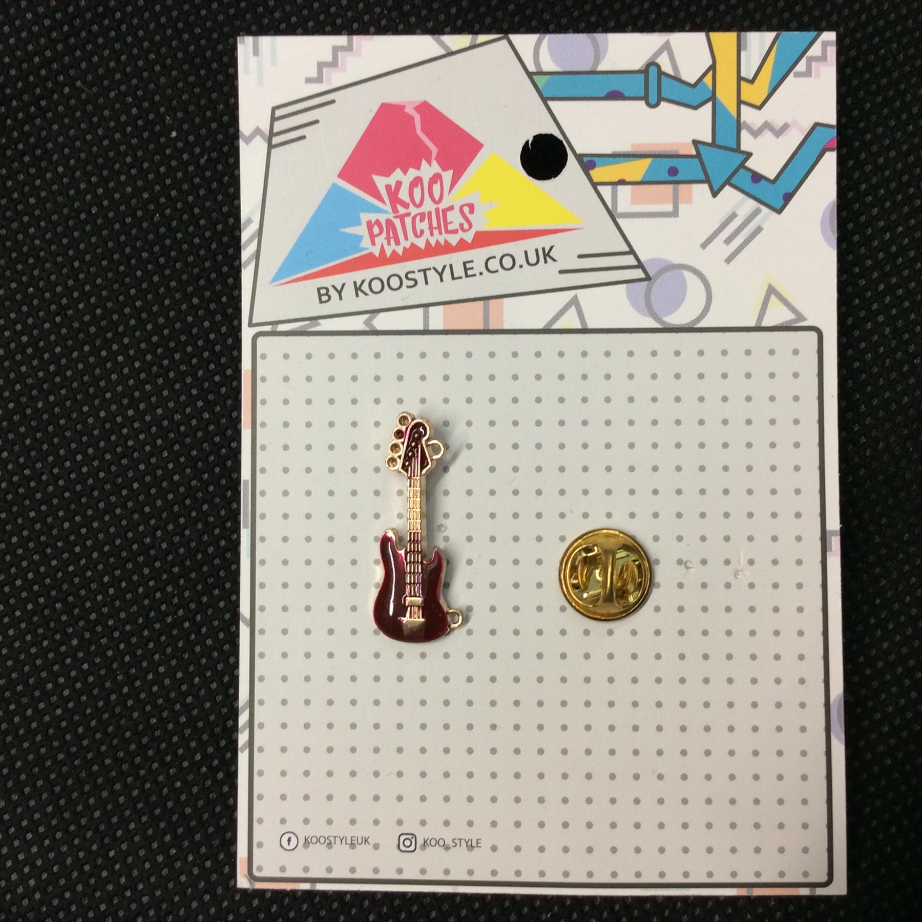 MP0062B - Mini Gold Red Burgundy Guitar Musical Instrument Metal Pin Badge