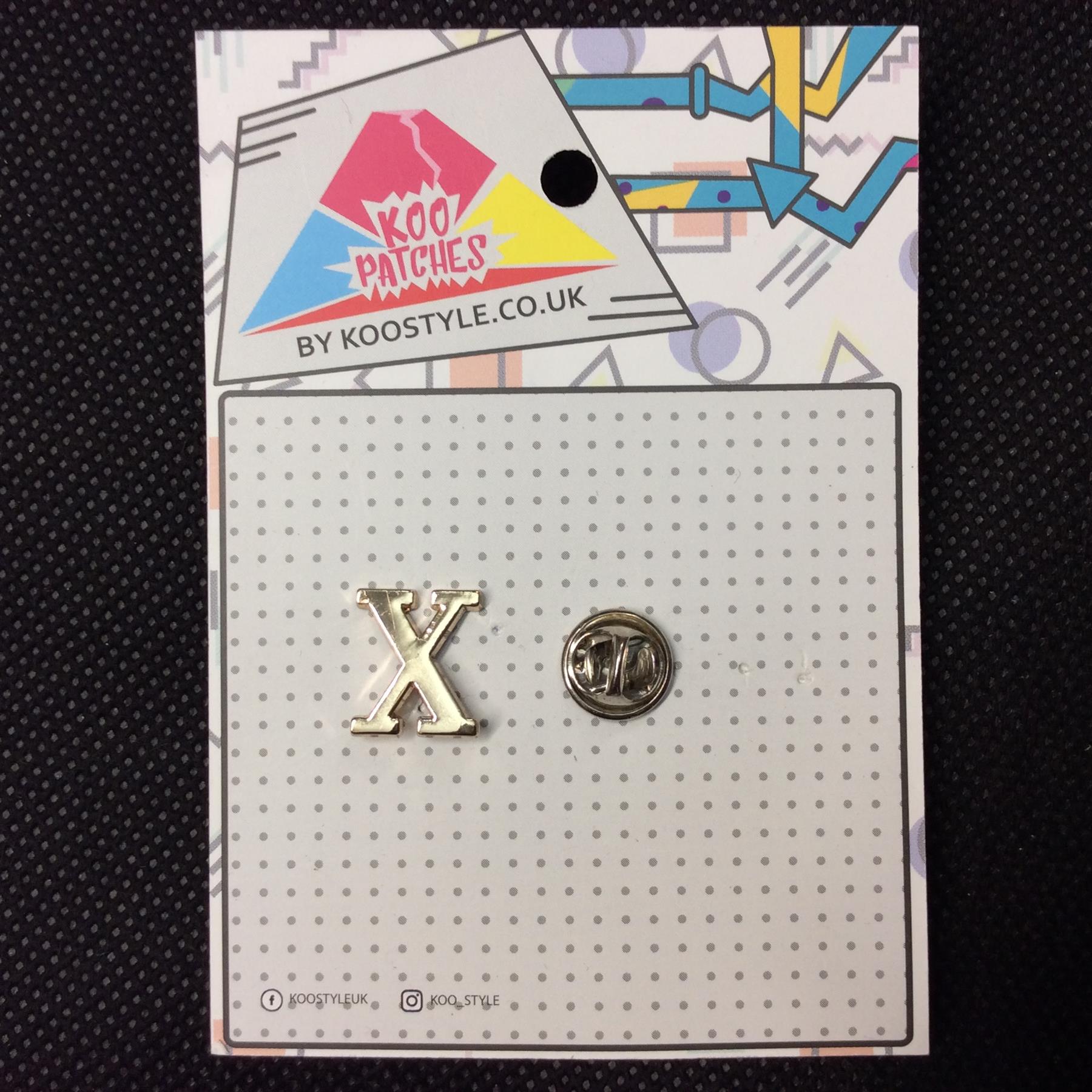 MP0067X - Silver Light Gold Letter X Metal Pin Badge