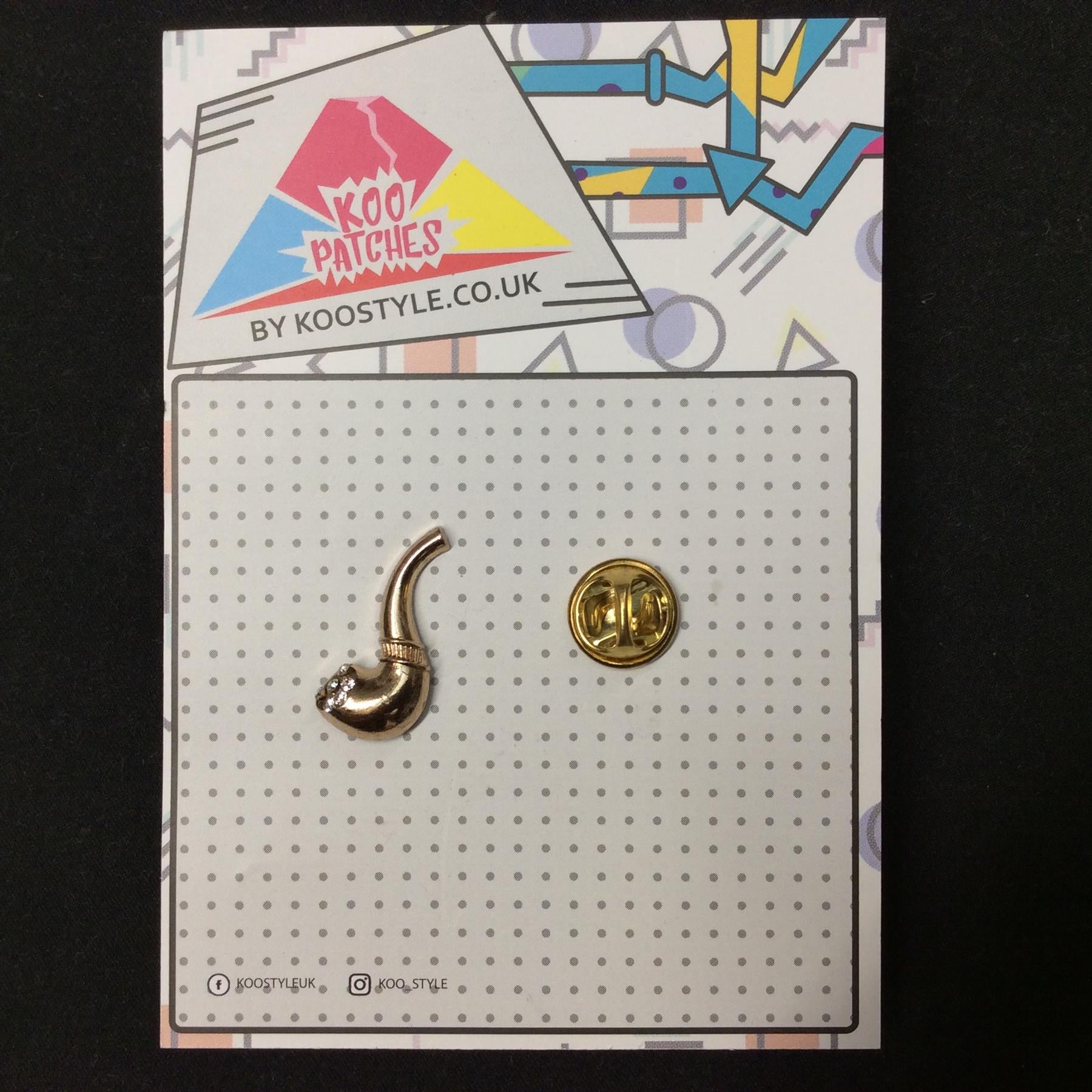 MP0104 - Gold Smoke Pipe Smoking Metal Pin Badge