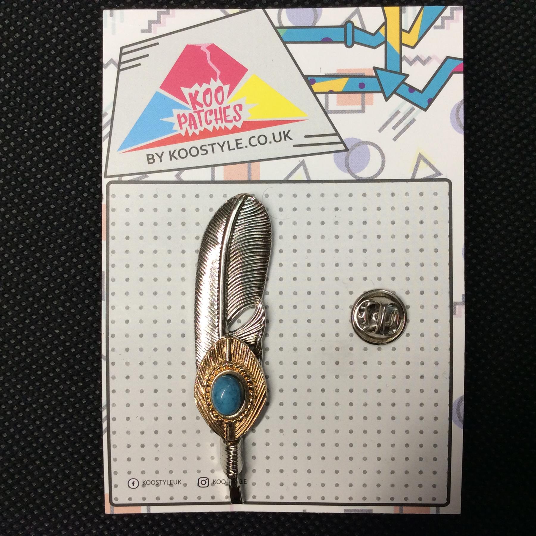 MP0121 - Blue Stone Silver Feather Metal Pin Badge