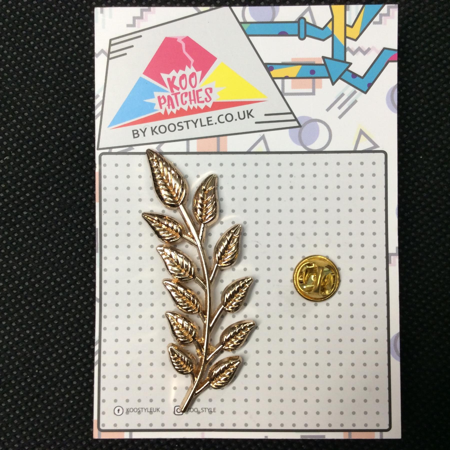 MP0127 - Gold Long Leaf Branch Metal Pin Badge