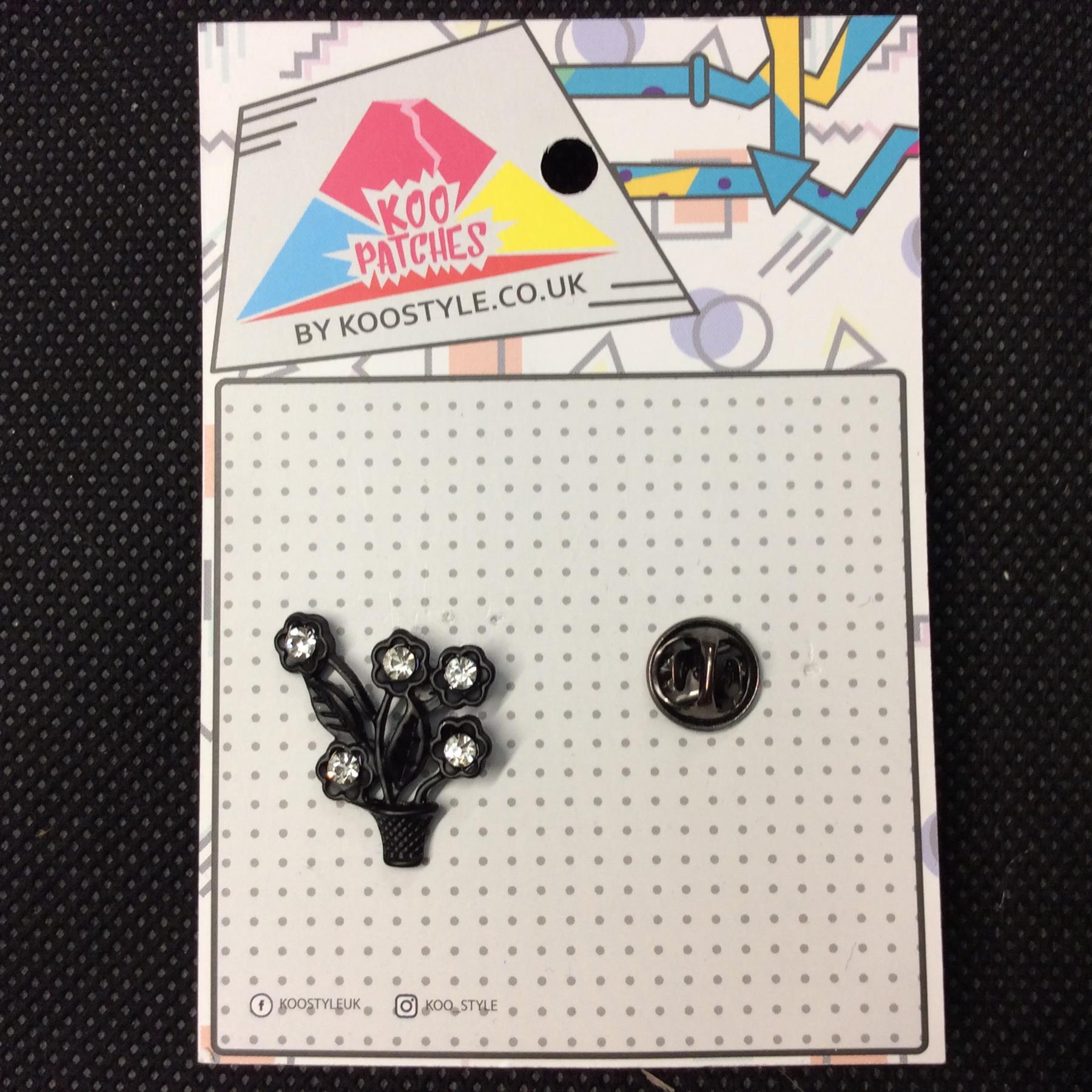 MP0130 - Black Flower Pot Stone Petals Metal Pin Badge