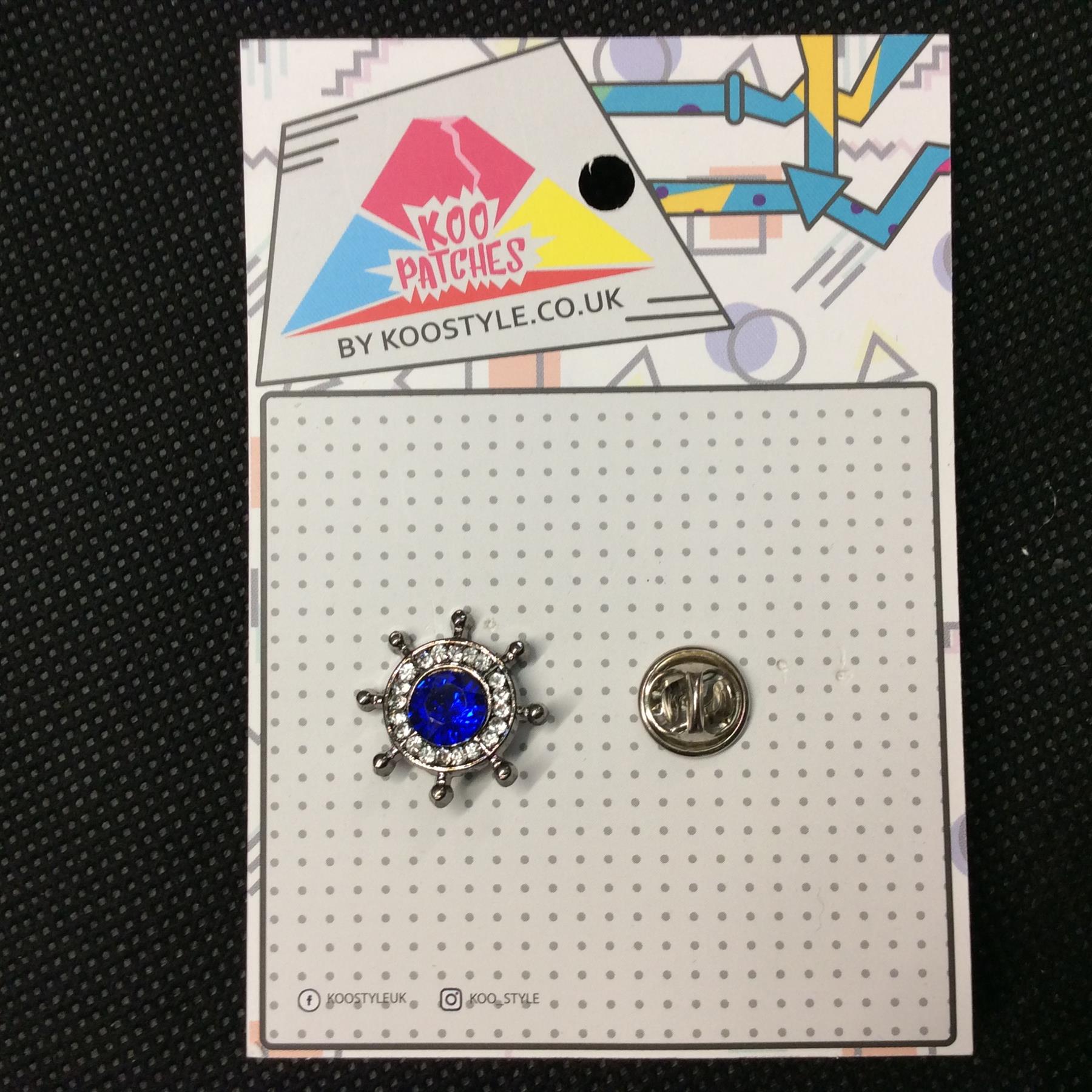 MP0131 - Blue Stone Silver Steering Wheel Boat Ship Metal Pin Badge