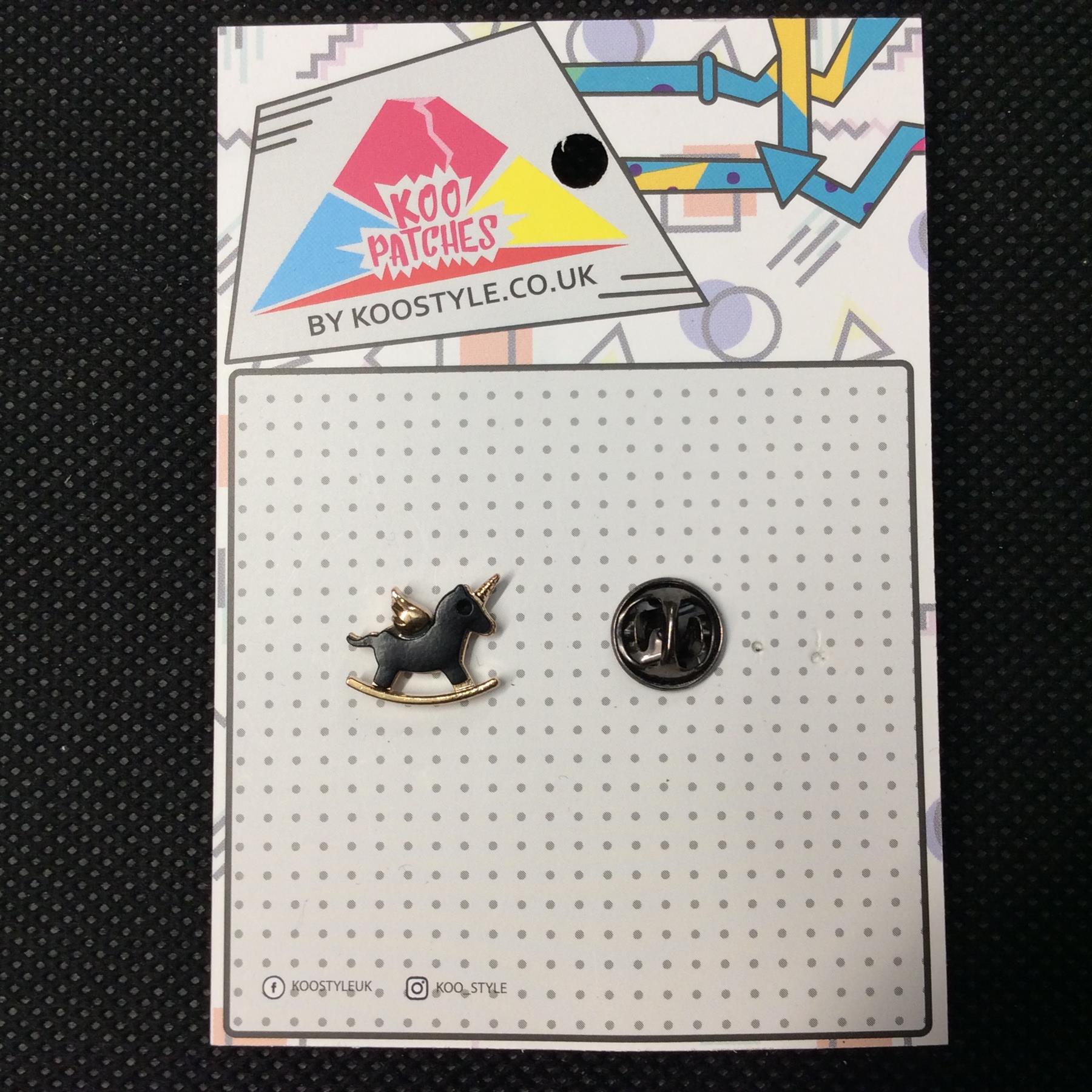 MP0148 - Black Gold Rocking Horse Metal Pin Badge