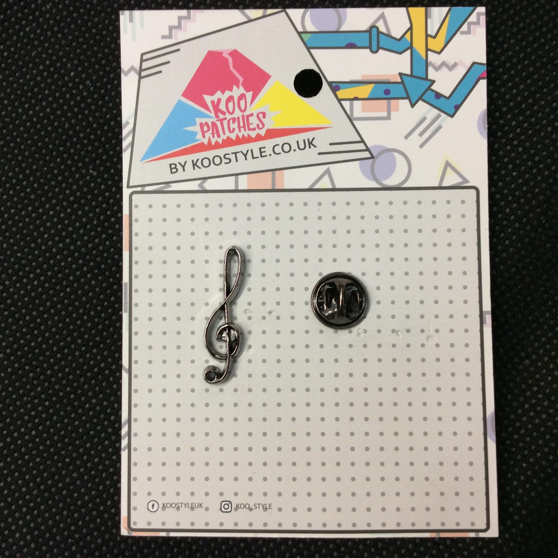 MP0184B - Slim Black Treble Clef Dark Silver Music Note Metal Pin Badge