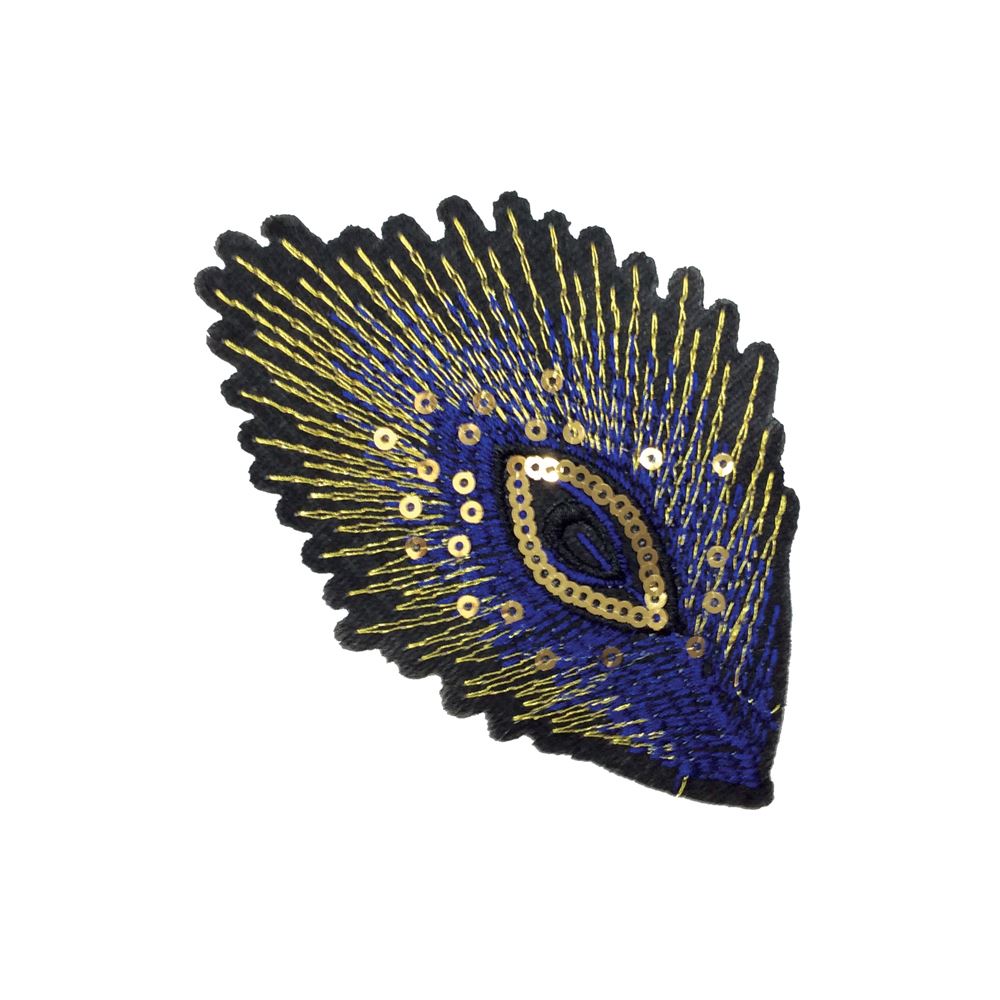 PC3201B - Peacock Blue Gold Eye Feather (Iron On)