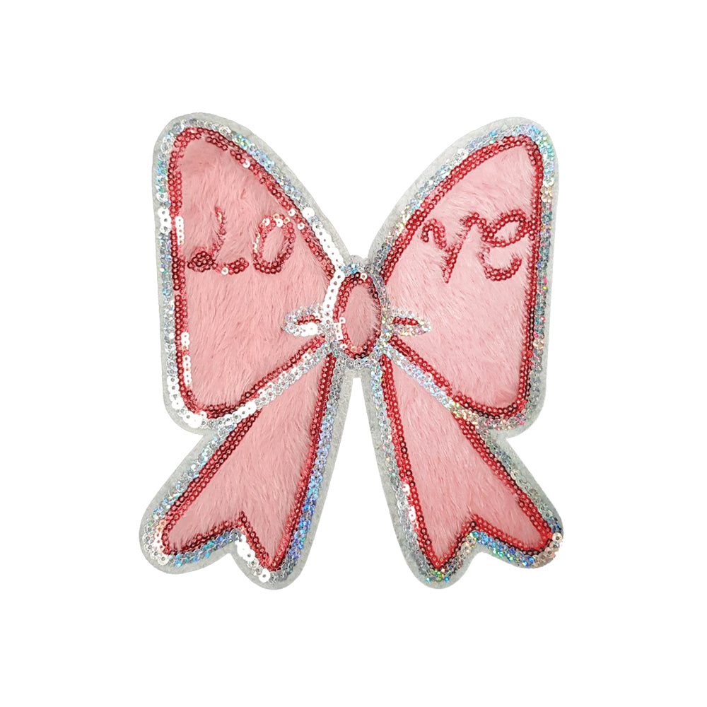 PC4182 - Pink Fur Love Bow Ribbon (Sew On)