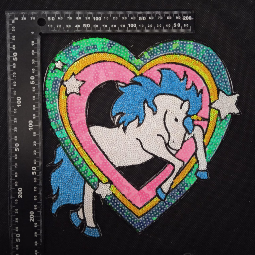 PC4193 - Sequin White Heart Unicorn (Iron on)